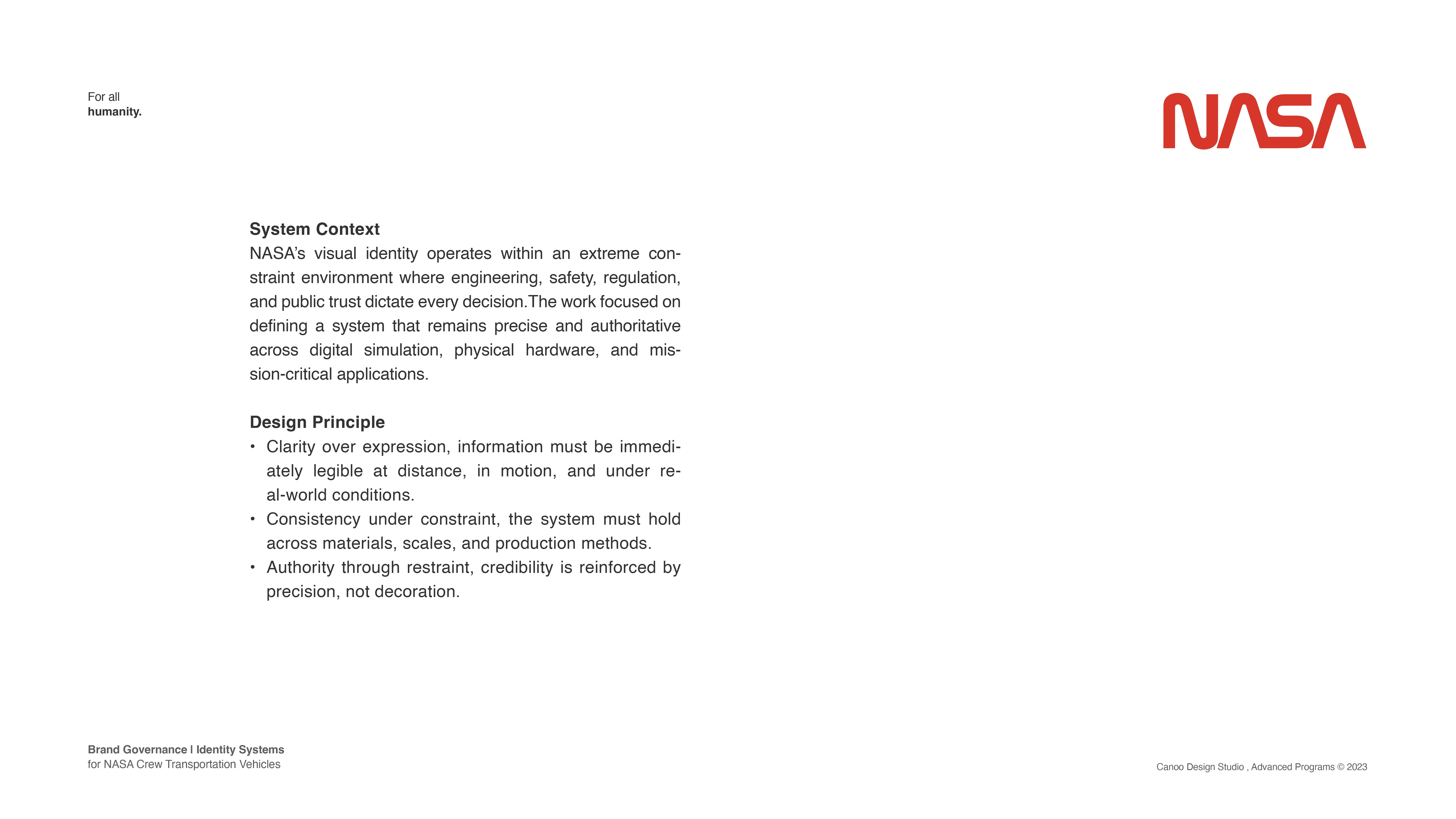 Executed and governed NASA compliant brand application across a small batch production program.
